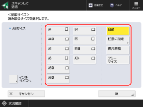 [自動]を押し、記録サイズ(スキャンデータの用紙サイズ)を選択します。
