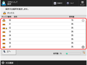 画面左上に、保存先のアイコンと階層(ユーザーボックスの場合はボックス番号と名称)が表示されます。