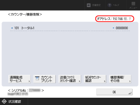 IPv4アドレスの場合は、以下の手順で[カウンター/機器情報]画面で確認することもできます。