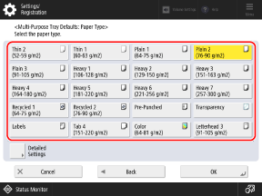 Press [Detailed Settings], and select the paper type from the displayed list.