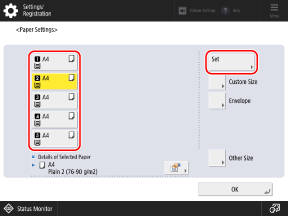 Select the paper drawer whose setting you want to change, and press [Set].