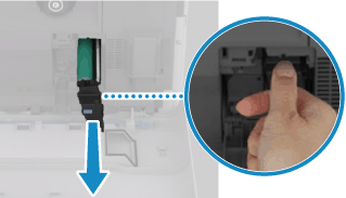 First, push the slider on the right side of the gray protective cover toward the rear of the machine as far as it will go, and then pull out the protective cover.