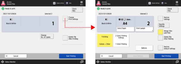 After checking or changing the print settings, press [Start Printing] to perform printing.