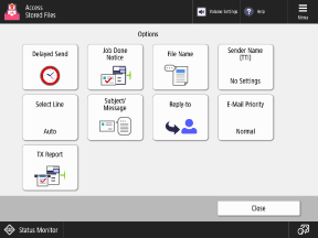 On the file selection screen of Mail Box, select a file and press [Send] to display the TX settings screen.