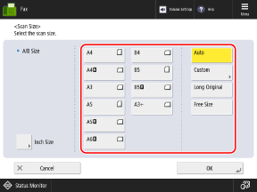 * If the paper size set on the receiving side is smaller than the size of the scanned original, the size may be reduced to match the paper size on the receiving side, or the data may be divided and sent.