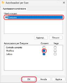 Per [Autorizzazioni], selezionare la casella di controllo [Consenti] per [Modifica].
