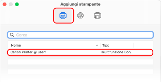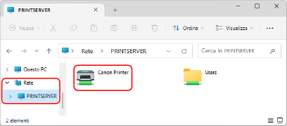In [Rete], selezionare il server di stampa per visualizzare la stampante condivisa.