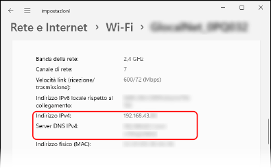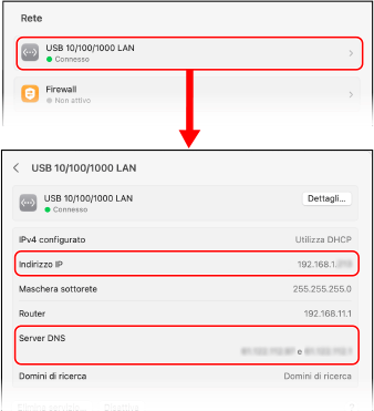 Verificare l'indirizzo IP e il server DNS in [Proprietà].