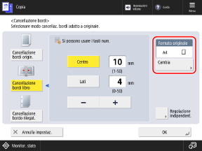 Premere [Cambia], selezionare il formato dell'originale e premere [OK].