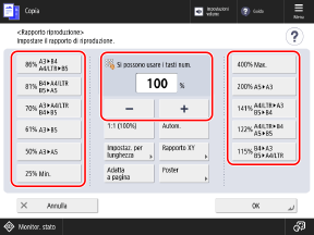 Quando si seleziona [Autom.], il rapporto di riproduzione viene impostato in automatico in base al formato carta selezionato in [Selezione carta].