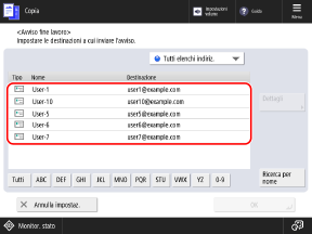 È possibile configurare le impostazioni per inviare un'e-mail di avviso al termine della copia.