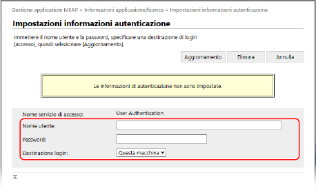 A seconda dell'applicazione MEAP, potrebbe essere necessario impostare le informazioni di autenticazione.