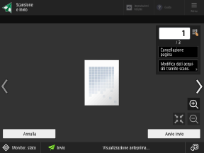 * Quando un originale viene posizionato sul vetro di lettura e scansionato oppure la scansione viene eseguita con Creazione lavoro, è possibile premere [Anteprima e invio] una volta scansionati tutti gli originali per visualizzare la schermata di anteprima.