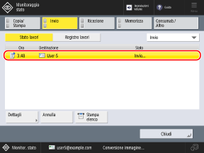 I processi gestiti dalla macchina, tra cui l'invio e il salvataggio dei dati scansionati, sono gestiti come lavori. Verificando il registro e lo stato dei lavori, è possibile determinare se un lavoro è stato inviato o salvato correttamente e la causa degli errori che si sono verificati.