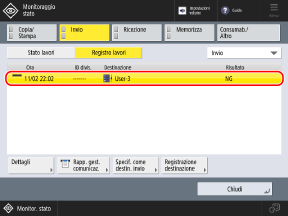 In base alle impostazioni della macchina, è anche possibile ripetere l'invio di un lavoro in cui si è verificato un errore di invio.