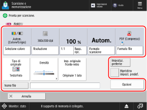 Premere [Scansione e memorizzazione in supporto memoria] e procedere al passaggio
