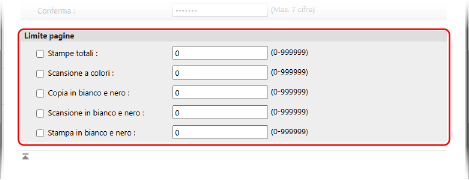 Per limitare il numero di pagine che possono essere stampate, scansionate o copiate, selezionare la voce desiderata e inserire il numero massimo di pagine.