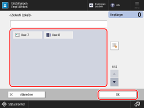 Aktivieren Sie die Kontrollkästchen der in der Gruppe zu speichernden Empfänger, und drücken Sie [OK].