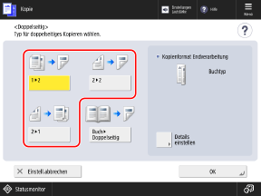Legen Sie bei Bedarf den Öffnungstyp für das Original und die Kopie fest.