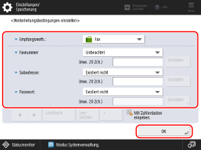 Legen Sie die Weiterleitungs- oder Speicherbedingungen fest, und drücken Sie [OK].