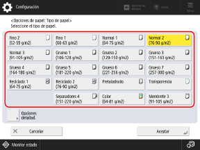 Pulse [Opciones detallad.] y seleccione el tipo de papel en la lista que aparece.