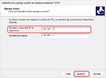 Aparece la pantalla [Asistente para agregar puerto de impresora estándar TCP/IP].