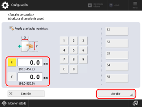 Si se registran tamaños no estándar de uso frecuente, puede recuperarlos pulsando de [S1] a [S5].