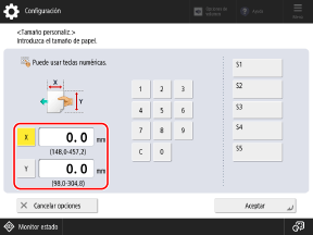 Si se registran tamaños no estándar de uso frecuente, puede recuperarlos pulsando de [S1] a [S5].