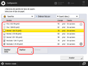Seleccione un tipo de papel de la lista y pulse [Duplicar].