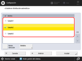 Utilice el panel de control para establecer la distribución automática. No puede configurar las opciones desde un ordenador mediante la IU remota.