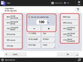 Tela de cópiaA tela [Copy Ratio] é exibida.