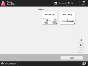 Pressione o botão nesta tela para definir as configurações detalhadas de impressão. Depois de definir as configurações de impressão, pressione [Close] para retornar à tela de configurações de impressão.