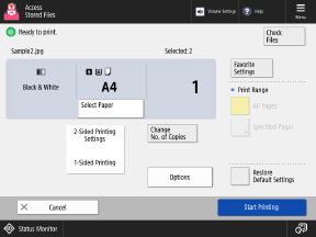 Depois de verificar ou alterar as configurações de impressão, pressione [Start Printing] para realizar a impressão.