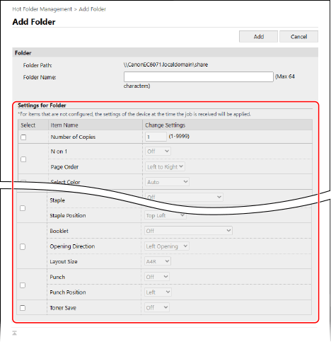 Um hot folder pode não funcionar corretamente ao fazer backup ou restaurar o Advanced Box. Clique no nome da pasta na tela [Hot Folder Management], verifique as informações de configuração e defina-as novamente, conforme necessário.