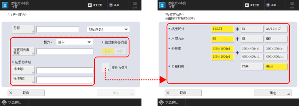 根据目的地机器规格设置目的地条件。如果设置了目的地机器不支持的条件,可能会出现发送错误。