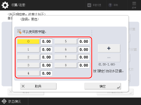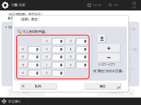 目视检查测试页上的颜色样本以确定浓度值(调整值),并输入每个数字的浓度值。