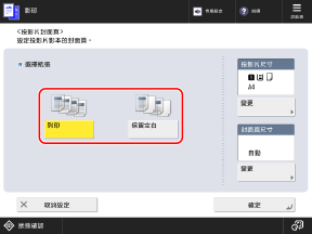 按下 [選擇紙張] 項下的 [變更],選擇準備將標籤部分影印在其上的標籤紙,按下 [確定]。