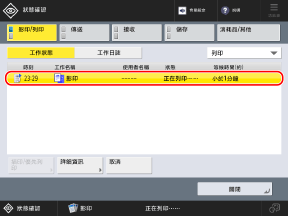 本機處理的程序 (包括影印) 會以工作的形式受到管理。藉由檢查工作的狀態和日誌,您可以確定影印工作是否正確執行以及發生錯誤的原因。