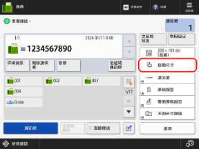 在傳真畫面上,按下原稿尺寸設定按鈕。傳真畫面