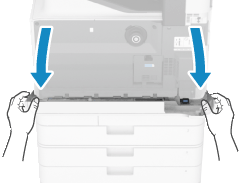 將碳粉匣的平坦表面朝下,將碳粉匣完全推入。