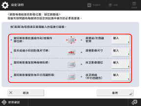 您可以透過使用本機掃描列印的測試頁來自動調整列印位置,也可以透過輸入測量值來手動調整列印位置。