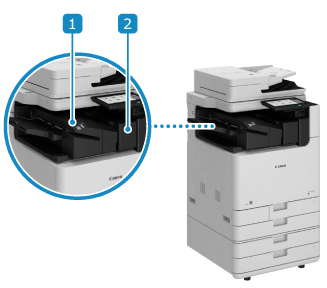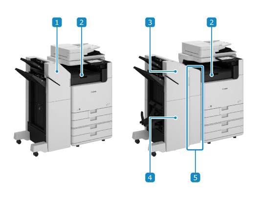 輸出列印和影印的紙張。您可以使用裝訂機和其他分頁裝訂處理功能。