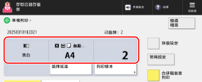 目前設定要使用的紙張以及列印份數顯示在畫面中央。檢查這些設定以確保正確列印。