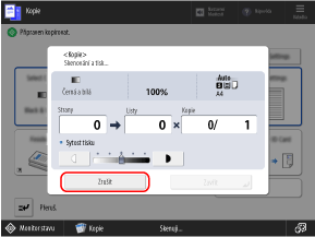 Stop], ze seznamu úloh kopírování vyberte úlohu, která se má zrušit, a stiskněte [Zrušit].
