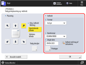 Tilføjer datoen (år, måned og dag), når du kopierer. Du kan angive dato, hvor der skal udskrives.