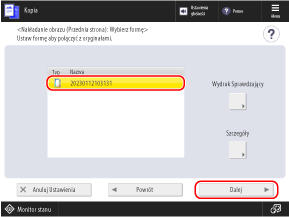 Wybierz rozmiar oryginału, który ma zostać użyty jako forma obrazu, i naciśnij przycisk [Dalej].