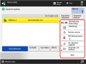 Możesz zmieniać i wysyłać wywołane miejsca odbioru i ustawienia skanowania.