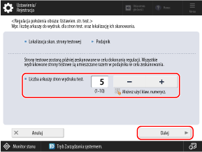 Ustaw liczbę arkuszy strony testowej i naciśnij [Dalej].