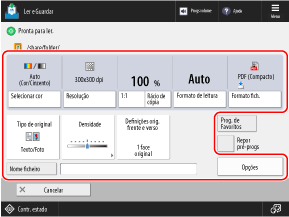 O destino para guardar é exibido no painel de controlo da máquina, para que possa confirmar o destino para guardar e guardar os dados digitalizados.