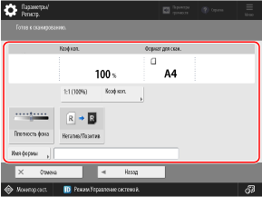 После завершения сканирования изображение формы регистрируется в аппарате и отображается в списке изображений форм на экране [Зарегистрировать форму].